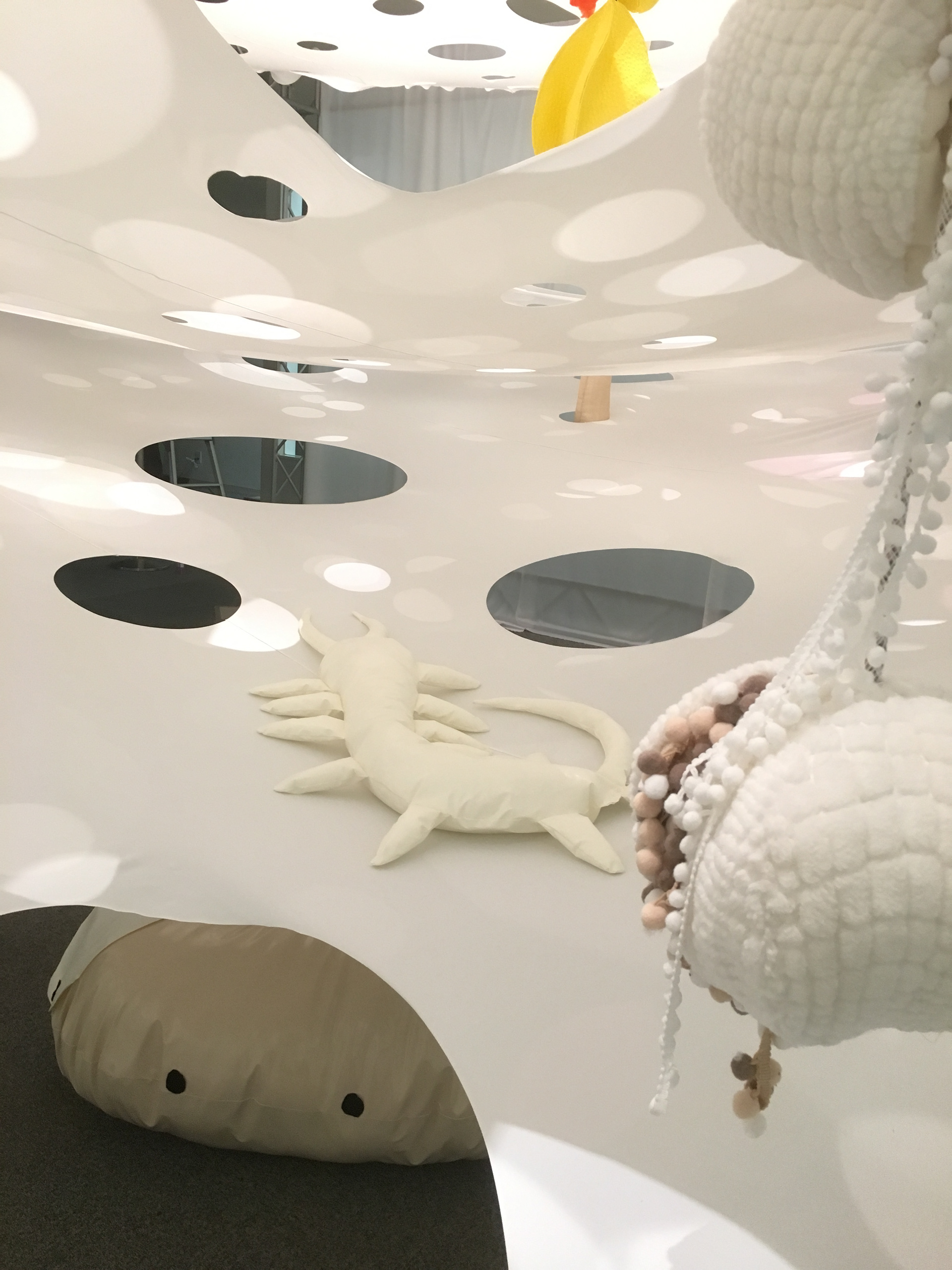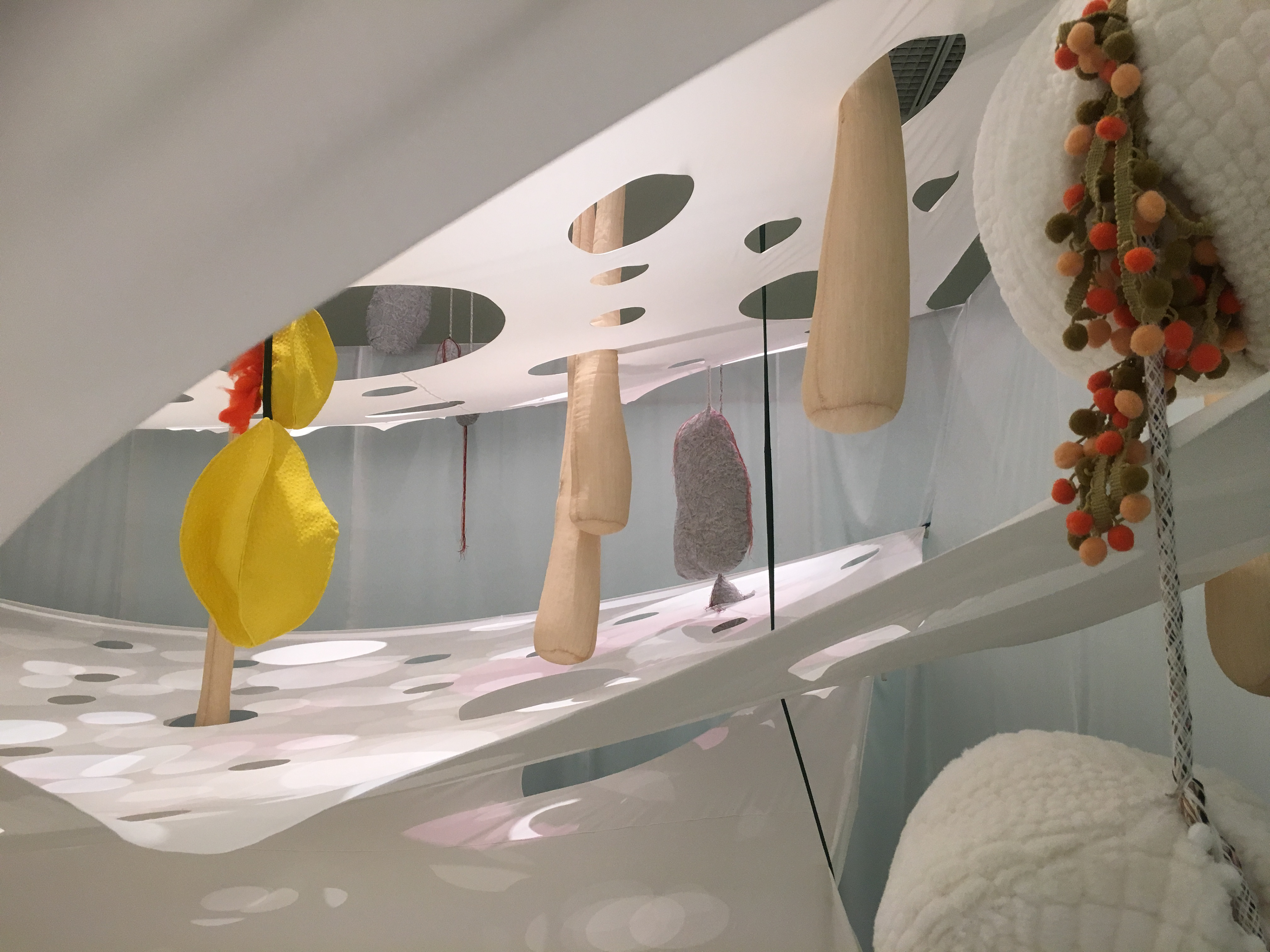 伸びる特殊繊維と布を使用して様々なテーマから生まれる異次元の空間体験が出来る大人気企画。